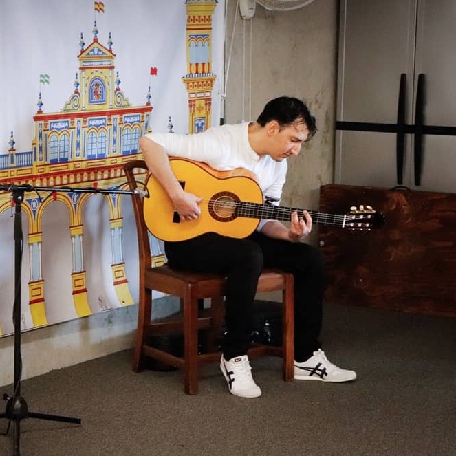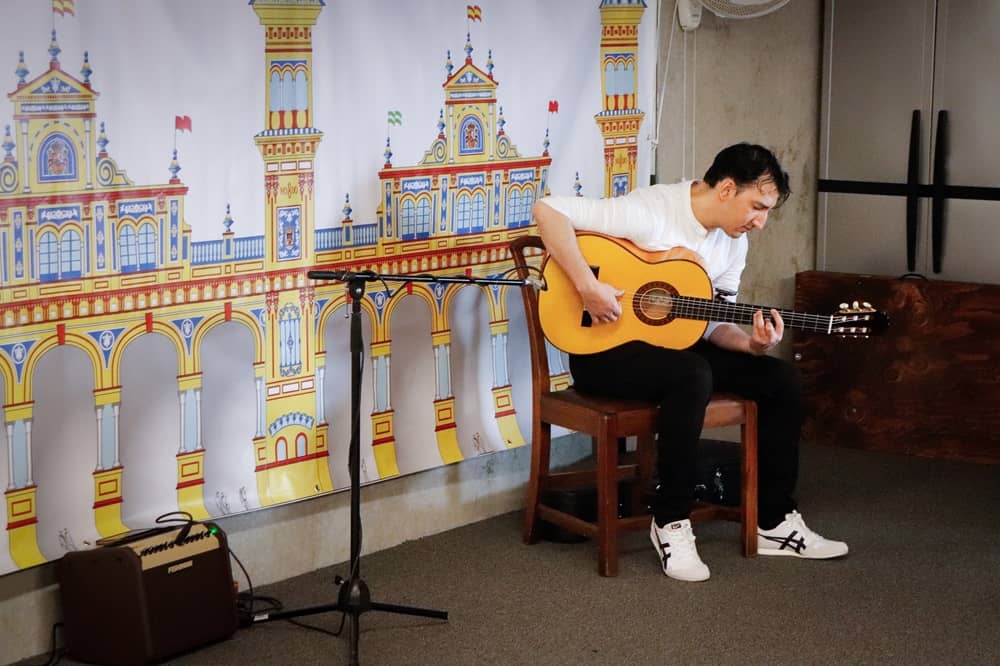 Our classes often feature live music and guest artists like flamenco guitarist like Amir Sadeghi, adding depth and authenticity to each show, highlight the vibrant spirit of flamenco.